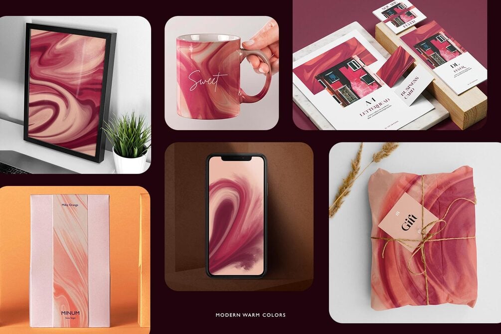 40 Abstract Liquid Marble Backgrounds in Poppy Sunset Color. It's Digital Painted and flows in modern or vintage feels. You can use it for branding, social media, posters, packaging, & more on your projects in warm themes.